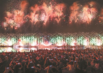 当晚,来自116个国家/地区的参赛人员依次入场。在“天府之檐”下,文体表演《锦绣之韵》、主题曲表演《友爱之声》接续上演,将运动项目与中华文化、巴蜀元素有机结合,展示出“运动无限 气象万千”的主题。在万众期待下,世运圣火在湖中点燃,以水火相生的科技创新美学,向全世界传递梦想之光。