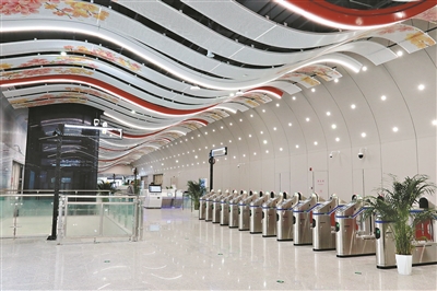 广州地铁设计院十三号线二期建筑总体彭伟说:“珠村站将轨道交通与民俗文化深度交融,装修设计巧妙融合珠村乞巧文化元素,设计团队提取传统编织纹样,和天花造型融合在一起,用灵动飘逸的线条作为主要设计语言,与车站建筑机电的非对称布局相呼应;红色一直是吉祥、喜庆、美好的象征,设计融入‘红丝’元素,结合灯具造型,传递出少女的美好愿望。此外,车站还打造了乞巧画廊,把七夕乞巧的传统习俗抽象成剪影人像,加强对传统文化的普及,用现代语言转译珠村乞巧的灵秀匠心,让更多市民乘客通过地铁车站这一文明窗口读懂乞巧文化,使乞巧文化能更好地传承和传播。”