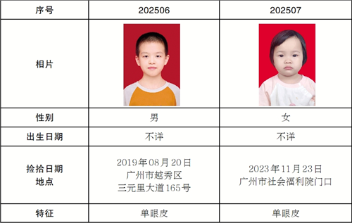根据《中华人民共和国民法典》有关规定,现将广州市福利院2名弃婴(儿童)情况予以公告,自公告之日起60天内,请其生父母或监护人前来认领,逾期未认领的,将依法办理收养登记,特此公告。
