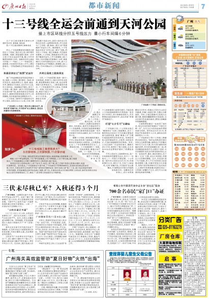 十三号线全运会前通到天河公园