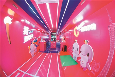 全运主题巴士内部空间充满吸引力。