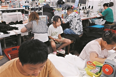 在“制衣村”的其他厂里,不少流水线工人的孩子同样利用暑假从老家来到了广州。