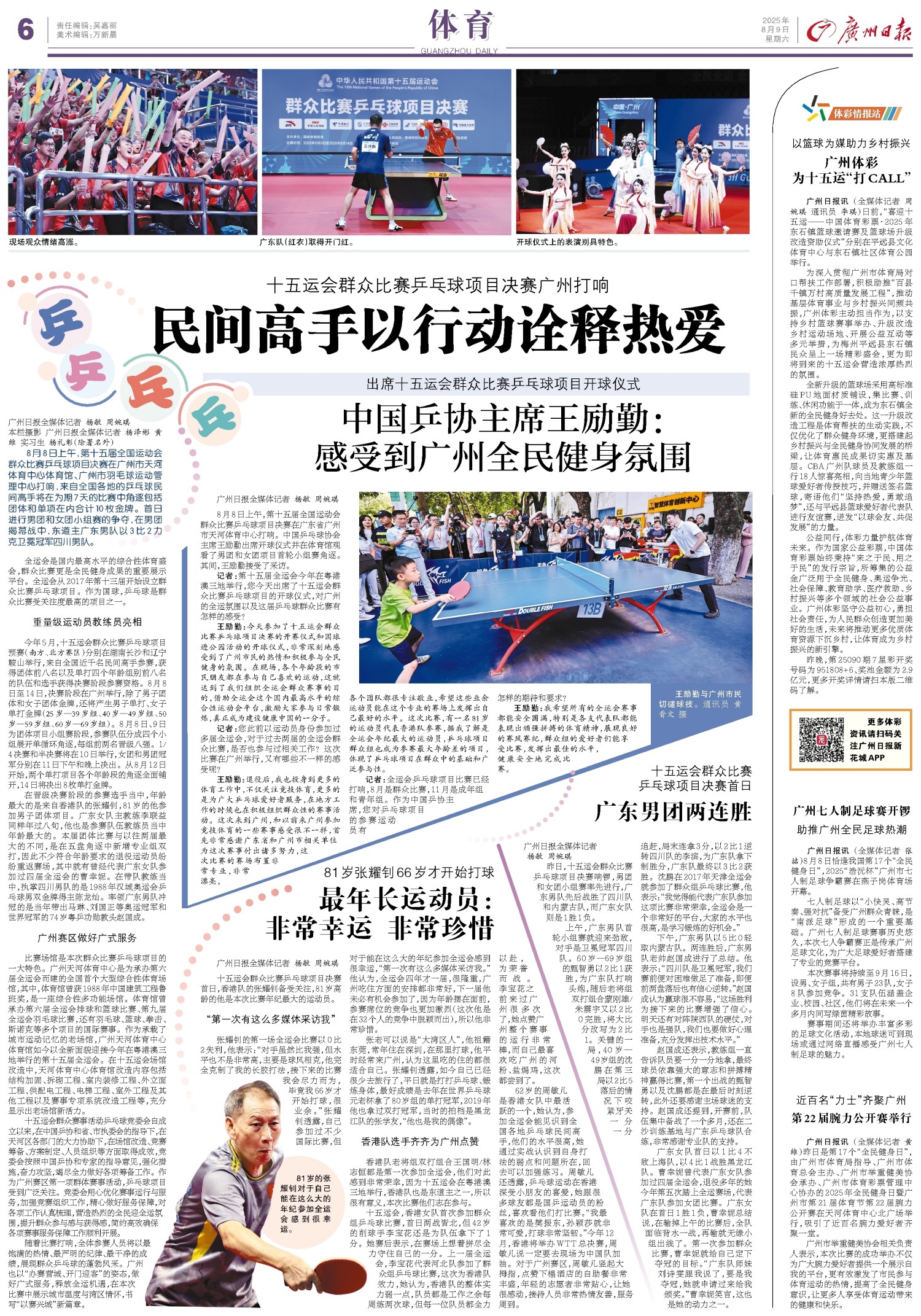 中国乒协主席王励勤:感受到广州全民健身氛围
