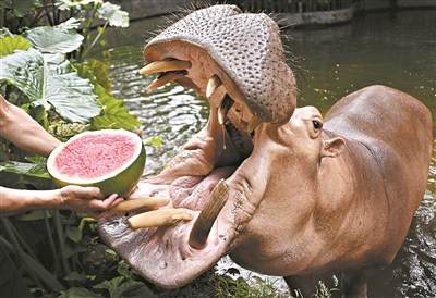 河马吃西瓜。