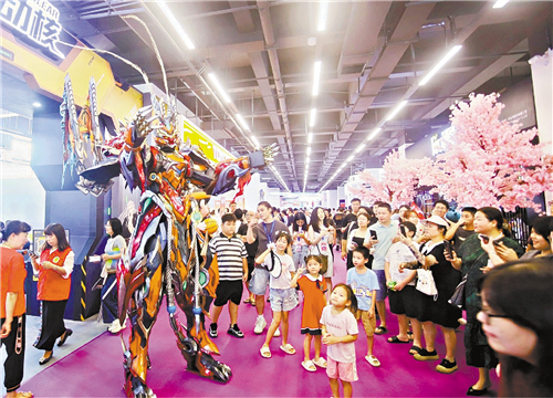 摩动核是东莞东秀文化传播有限公司旗下的国风机甲品牌。展会上,巨型“摩动核”国风机甲也引来观众围观。该公司推出以中国108星宿为基础并以中国古典人物命名的玄幻机甲动漫IP。其中,“白起”“曹仁”“敖丙”“干将”“吕布”等国风机甲系列,以英姿飒爽的造型,受到市场欢迎,部分产品一经推出便迅速售罄。