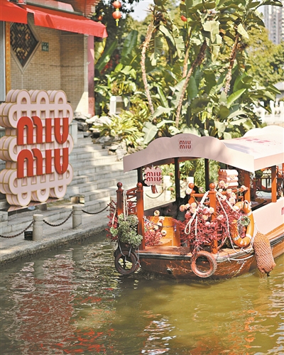 以MIUMIU为例,今年品牌一个重要策划是选择广州荔湾湖公园,启动“花船启航游”活动。该活动的创意令人留下深刻印象。