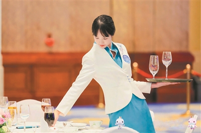 记者在现场看到,从“整个桌面的摆台创意”到“选手对服务流程的熟悉程度与礼仪体现”再到“菜品介绍”,每一个细节都会被评委的“火眼金睛”关注到。“以中式摆台为例,如果想要取得高分,首先主饰物要突出城市文化元素。同时,要达到竞赛技术文件的要求,比如每个餐具之间的距离有特定要求,杯子与杯子之间的距离不能太宽,也不能太窄,把笔从两杯之间晃过去,可以做到‘笔过两杯而不响’。”一位裁判赛后这样表示。