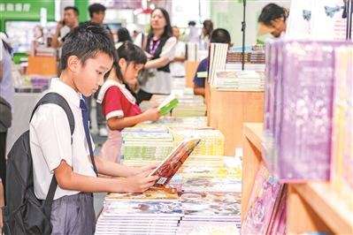 8月15日上午,2025南国书香节羊城书展开幕。图为一名小朋友在认真看书。广州日报全媒体记者吴子良 摄