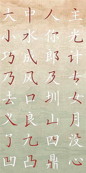 方正文沁永乐大典体定型的32种基本笔画(广州国家版本馆供图)