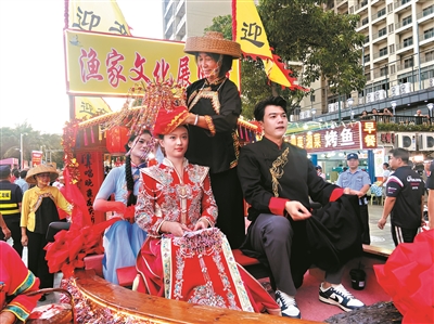 今年的开渔季活动亮点纷呈,出征渔船是历届开渔季最多的一次。“渔家婚嫁活动”通过鲜艳服饰、特色礼仪和喜庆氛围,让游客沉浸式体验疍家人的生活气息与文化根脉,实现非遗的“活态展示”;沙滩音乐会、世界模特大赛、大角湾烟花秀、夜光风筝嘉年华、西海岸滨海摄影大赛等丰富多彩的文化配套活动,为开渔季活动注入了时尚活力。