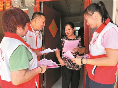 “今天任务主要是向社区居民宣传防控知识,出发!”8月13日上午9点,番禺区市桥街康裕社区党群服务中心,“广州好人”张玉堂带领多名红棉老兵志愿者集结,准备前往社区开展防蚊灭蚊志愿服务活动。一众志愿者按照三人一组进行分组,每组负责一栋居民楼,挨家挨户上门发放驱蚊用品和宣传单,并向居民讲解“两热”的传播途径、症状表现以及预防方法,提醒大家要及时清除家里盆栽积水、清理好杂物。