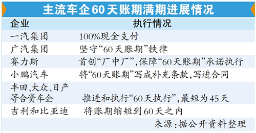 记者了解到,合资车企、民营企业和新势力也加入其中。丰田、大众、日产、小鹏、理想等先后执行60天内支付账款,吉利和比亚迪也将账期缩短到60天之内。