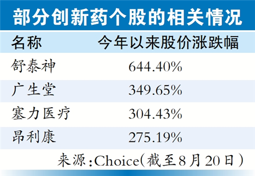 今年以来,A股创新药板块上涨超50%,港股创新药板块涨逾100%。其中,舒泰神、广生堂、塞力医疗等个股股价更是涨超300%。