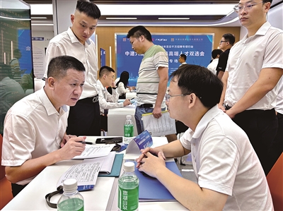 在招聘洽谈现场,中建六局总部、中建丝路及下属19家单位组成“引才矩阵”,带来项目经理、设计负责人、战略性新兴业务经理等200多个核心岗位。