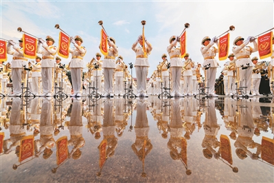 军乐战士在训练中。 新华社发