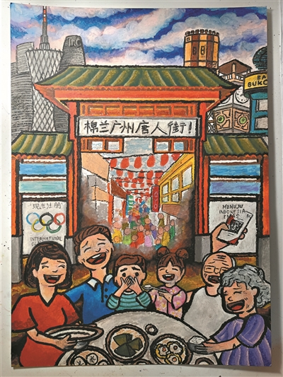 记者在细读众多的投稿文字作品中,总能读到这群华人新生代笔尖下的类似感悟:“笔尖流转,情寄两国。我们华裔青少年不仅是联系两国的桥梁,更是推动亚洲文化互鉴的火种……”“世界很大,但我相信笔尖有光,去照亮国家之间跨越山海的情谊,也照亮我们共同前行的未来……”在众多的投稿绘画作品中,记者也看到了很多华人新生代画笔下的中国元素、广东元素、广州元素。比如,作为广州的地标性建筑,“广州塔”元素就出现在很多绘画作品中。