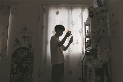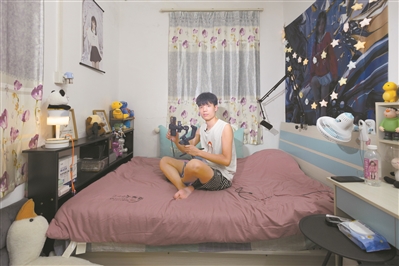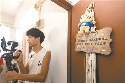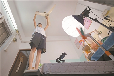 刘伟利用休息时间在家里拍摄视频。为了取景效果更佳,他把出租屋布置得精致整洁。