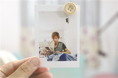 刘伟15岁便离家学习制衣,照片中坐在缝纫机前的他面庞青涩。