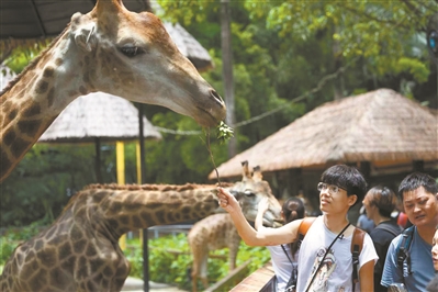休息日,刘伟来到长隆野生动物园拍摄,并和长颈鹿互动。