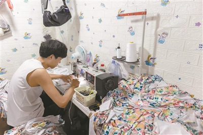 31岁的刘伟是一位年轻的湖北制衣工人,15岁便离家学习制衣,如今他已累积了十多年流水线经验,年纪不大的他已是一位经验老到的车位师傅。今年是他在广州市海珠区“制衣村”打零工的第三个年头,在村里每天能赚到四百元左右。