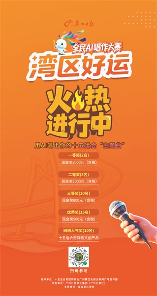 目前活动正在火热进行中。扫描活动二维码或通过广州日报微信下拉菜单、广州日报新花城客户端活动专页,即可进入“湾区好运”AI音乐创作平台进行创作。同时,活动开通互动功能,广大网友可以为心水歌曲点赞分享,精彩作品和热门歌曲将在广州日报全媒体平台上呈现。