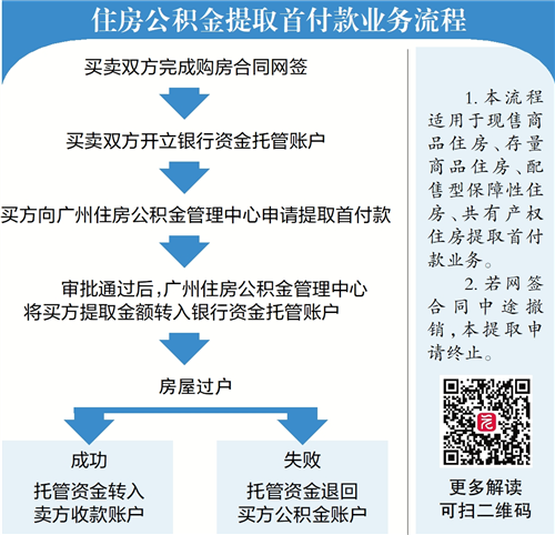 买卖双方完成购房合同网签且开立银行资金托管账户后,只需到广州住房公积金管理中心任一服务网点提交“一套材料、一次申请”,即可一次性将住房公积金账户余额用于支付购房首付款。