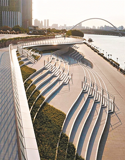 领衔设计的华南理工大学建筑设计研究院团队介绍,项目以“珠联碧合,跃动广心”作为总体景观设计概念,打造广州核心滨水区域的水岸空间。