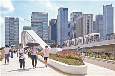 “得知开通的消息,我一早就赶过来了。”家住天河的谢伯早早乘坐APM,专门到黄埔涌桥打卡。市民游客走在桥上,步移景异,步行桥特色景观——“广州之镜”的特色场景尽收眼底。