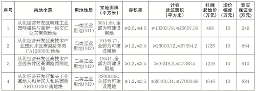 经广州市从化区人民政府批准,广州市规划和自然资源局从化区分局以挂牌方式出让4宗地的国有建设用地使用权。现将有关事项公告如下: