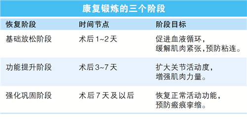 科学规划锻炼可参考以下分阶段的详细方案,根据每个阶段的目标,有的放矢,循序渐进,有助于加速康复。