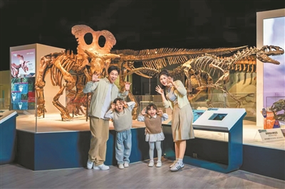 正佳自然科学探索中心以“科学+运动”为核心纽带,分别推出科学表演秀、非遗手工传承、天文赏月与恐龙运动会等特色主题活动,将硬核科普、运动精神、文化传承深度融合,打造首届“恐龙运动会”,以恐龙化石中体现出来的动物生存技能为灵感,推出 “恐龙纸船竞速”“恐龙障碍赛” 等项目,让梅杜莎角龙的防御技巧、异特龙的速度优势变得生动可触。
