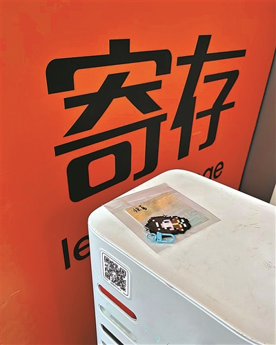 被“藏”在街边共享充电宝柜子上方的一枚钥匙扣。
