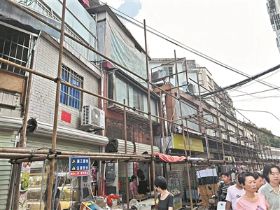 市场外围搭起了施工架。
