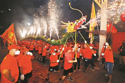 广州日报讯 (全媒体记者汤南 通讯员张淑婷、钟佩)“舞龙头,无忧愁;摸龙须,步步高;穿龙底,醒目仔;睇火龙,唔会穷……”昨晚,中秋之夜,广州市白云区均禾街、白云湖街等地的多条村,上演盛大的舞火龙民俗活动。这种原生态中秋习俗已在白云区绵延传承了一百多年。村民们通过舞火龙传统活动,庆祝中秋佳节,祈祷风调雨顺、国泰民安、五谷丰登。龙影翻飞,火光跃动,吸引大批市民游客争睹盛况,共同感受省级非物质文化遗产的独特魅力。