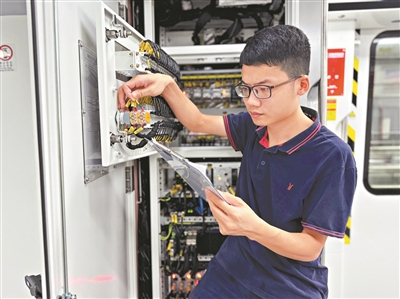 于汇洋正在认真检测线路。广州日报全媒体记者骆昌威摄