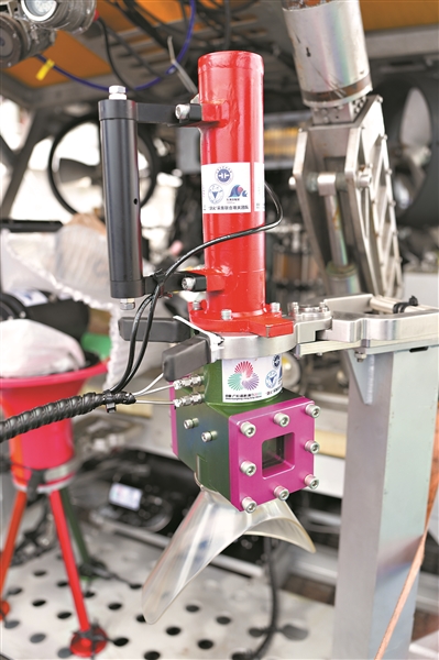 ● 14时26分,由广州海洋地质调查局牵头自主研发的“海马”号4500米级深海遥控潜水器(ROV)搭载“可燃冰原位采集分解及引燃装置”下潜。