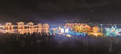 几乎同一时刻,千里之外的潮州古城,韩江化为无边的画布,广济桥变身流动的舞台。在潮州大锣鼓铿锵的韵律中,16名鲤鱼舞演员翩然起舞,江心数艘灯船缓缓驶过,悠扬的民乐与两岸的灯火唱和,让一位来自佛山的摄影师彻夜未眠:“我本只想拍一张广济桥的夜景,却意外收获了一场流动的盛宴。”