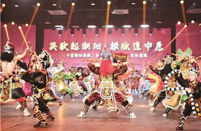 汕头潮阳英歌小镇里的英歌舞表演。