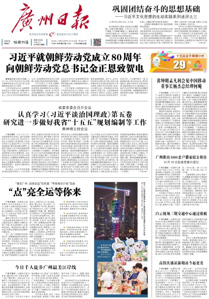 广州日报头版A1高铁庆盛站新塘站今起更名 黄庆2025-10-11 2 2025年10月11日 星期六