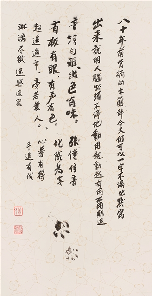 不以技法为标榜,不求形貌之工巧,然笔墨间自具精神风骨,乃学养、胸襟、识见之自然流露。其书以意为之,不拘程式,点画之间,皆由心出,从容中道,不激不厉。尤重内容之切实与情感之真挚,或记事,或抒怀,或论学,字里行间充盈书卷气与人文关怀。此非炫技之作,而是生命境界之呈现,故能动人以诚,传之久远。