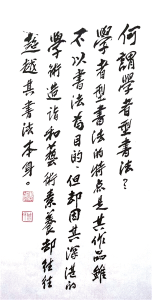 学者型书法的特点是其作品虽不以书法为目的,但因其深湛的学术造诣和艺术素养却往往超越其书法本身。——曾宪通