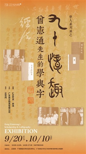 策展人宋浩先生说:展览一层多为曾宪通日常书写以及旧时的手稿,二层多为曾宪通与恩师的书信来往以及其弟子作品。从时间跨度与空间维度,展示了曾宪通为学七十余年的光辉成就。曾宪通老先生以及弟子整理和收集展示的部分代表作,可略窥曾师学术的梗概与演进升华的轨迹。也体现了这一脉起码三代师生的传承与情谊,希望后生有所触发,悟仁者之字,传之久远。