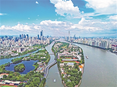 蓝天白云下的广州。