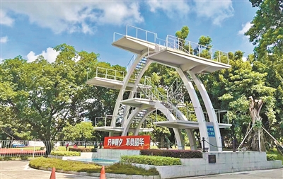 在二沙体育训练中心一隅,一座混凝土露天跳水台静静矗立,董良田直言它是“中国体育史上的活文物”。这座跳水台与基地同年建成,完全参照匈牙利模式设计,设有1米板、3米板,以及3米、5米、7.5米、10米跳台,是当时国内顶尖的跳水训练场地。