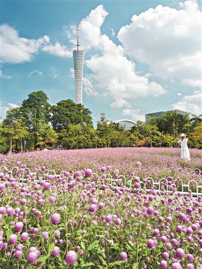 二沙岛上的“千日红”花海 摄影:广州日报全媒体记者 刘宇