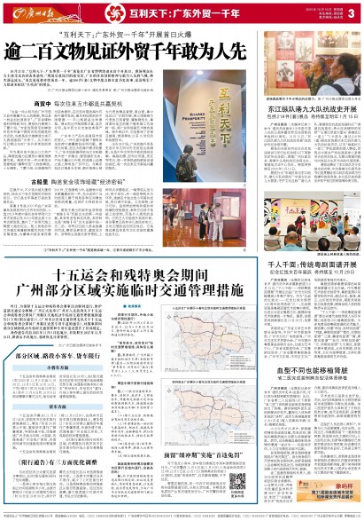 十五运会和残特奥会期间广州部分区域实施临时交通管理措施