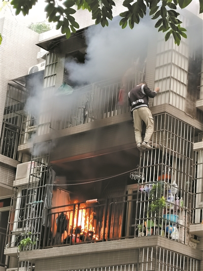 他向四楼住户寻求帮助,在多方协助且确保自身安全的情况下,拿起灭火器,小心翼翼地顺着四楼阳台与三楼交界处的防盗网,一步一步爬向三楼阳台栏杆。随后他手持灭火器,对准屋内起火部位喷射。待明火被完全扑灭,陈志伟再次攀爬进入屋内,进行二次检查并补喷灭火剂,确保不会发生二次起火。因处置及时,这起事故未造成人员伤亡。