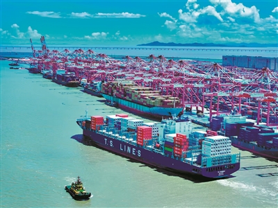 广州港南沙港区三期码头一派繁忙景象。 严永洪 摄