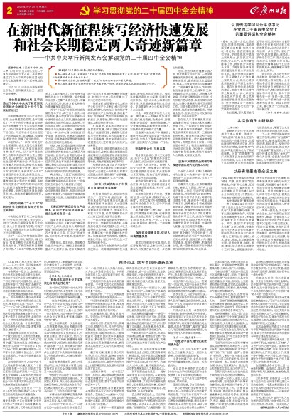 10月20日至23日,中国共产党第二十届中央委员会第四次全体会议在北京胜利召开。全会听取和讨论了习近平总书记受中央政治局委托所作的工作报告,审议通过了《中共中央关于制定国民经济和社会发展第十五个五年规划的建议》。习近平总书记就《建议(讨论稿)》向全会作了说明。