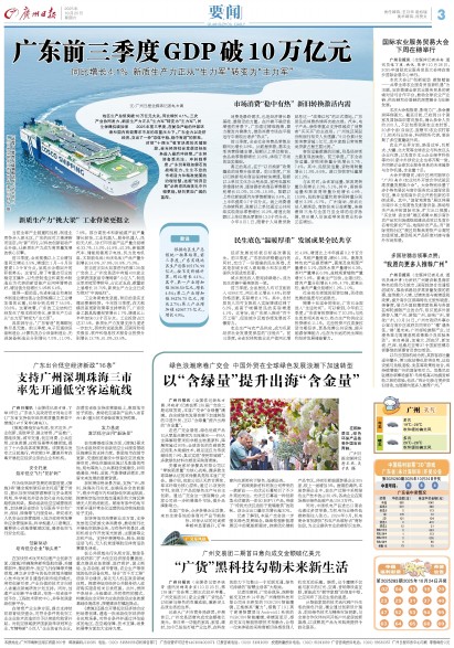 地区生产总值突破10万亿元大关,同比增长4.1%,三次产业协同发力,新质生产力正从“生力军”转变为“主力军”,民生保障持续加强……2025年前三季度,在复杂严峻的外部环境和国内有效需求不足的双重压力下,广东全力以赴拼经济,交出了一份“总体平稳、稳中有进”的答卷。